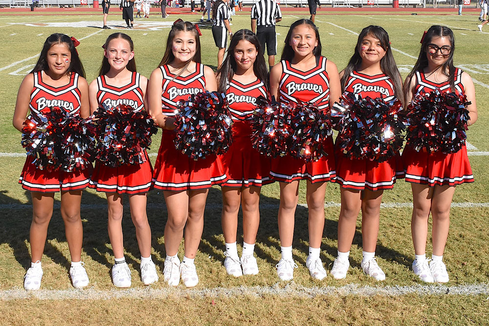 7th Grade Cheerleaders — (l-r) Arianna Rocha, Tensley Grimsley, Aryelle Chico, Jade Mills, Amayah Royas, Alayhlee Villarreal, and Katiyah Perez.