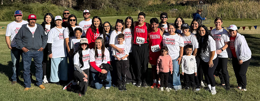 All In The Family — Fernando Moreno and Avram Hernandez (l-r in center) competed in the UIL Region 1 Cross Country Championship this week at Mae Simmons Park in Lubbock. They were supported by family, friends, fans, and coaches. Fernando finished in 51st place with a time of 18:17.70 and Avram finished with a time of 18:18.60 and finished in 53rd place. There were 176 runners in the championship meet and the winning time was 15:20.50 run by Noah Strohman of Holiday.