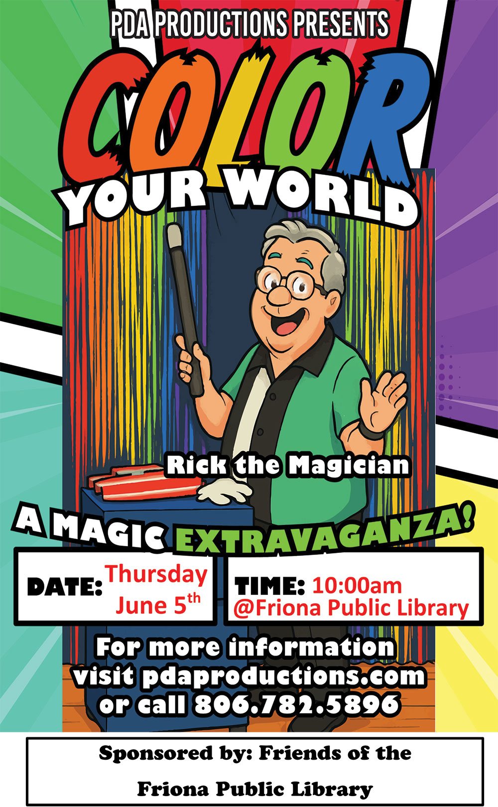 Magic Extravaganza — The Friona Public Library’s summer reading program continues next Thursday, June 5th, with the Color My World Magic Show. The event will begin at 10:00 a.m. in the Friona Public Library. See ad on page 2.