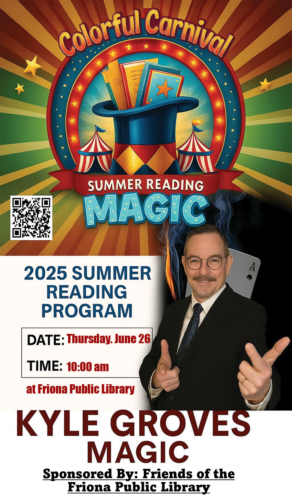 Classroom In The Park — The Friona Public Library’s Summer Reading Program continues next Thursday, June 26th, with Kyle Grove’s Magic Show. The event will begin at 10:00 a.m. at the library as is sponsored by the Friends of the Friona Public Library.