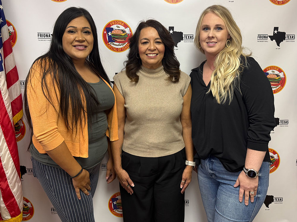 Interims No More — Chamber of Commerce President Adrienne Vazquez (right) welcomes Mari Martinez (center) as the new Chamber Executive Vice President and Nydia Mendez (left) as the new Chamber Administrative Assistant. Mari and Nydia had been serving as “interims” for past few months. Congratulations and great job with the Cheeseburger Festival!!!
