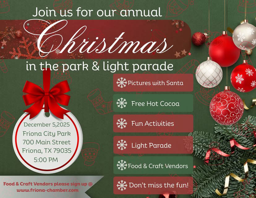 Friona Star Christmas Edition — There will not be a Friona Star for Thursday, December 18th. Our year-ending Christmas Issue will be out on Tuesday, December 23rd. It will have lots of Christmas photos, Santa letters, and holiday ads from our loyal advertisers. The Friona Star can be found at the Hop-In Convenience store, Bi-Wize, and at both Allsup’s locations. You can also drop by the office at 1215 Elm to pick up a copy.
